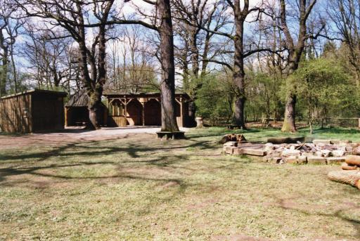 Das im April 1998 von Anton Muck aufgenommene Foto zeigt den Grillplatz der Vereinsgemeinschaft Westuffeln in der Struth. Der Grillplatz wurde unter alten Huteeichen angelegt, die in Jahren der Eichelmast so viele Eicheln produzierten, dass die Schweine des Ortes zur Mast in den Wald getrieben werden konnten. Der Grillplatz wurde 1982 von der in 1980 gegründeten Vereinsgemeinschaft angelegt, wird seit vielen Jahren vom Heimat- und Verkehrsverein instand gehalten und kann gemietet werden. Das Foto wurde von Erni Muck zur Verfügung gestellt.