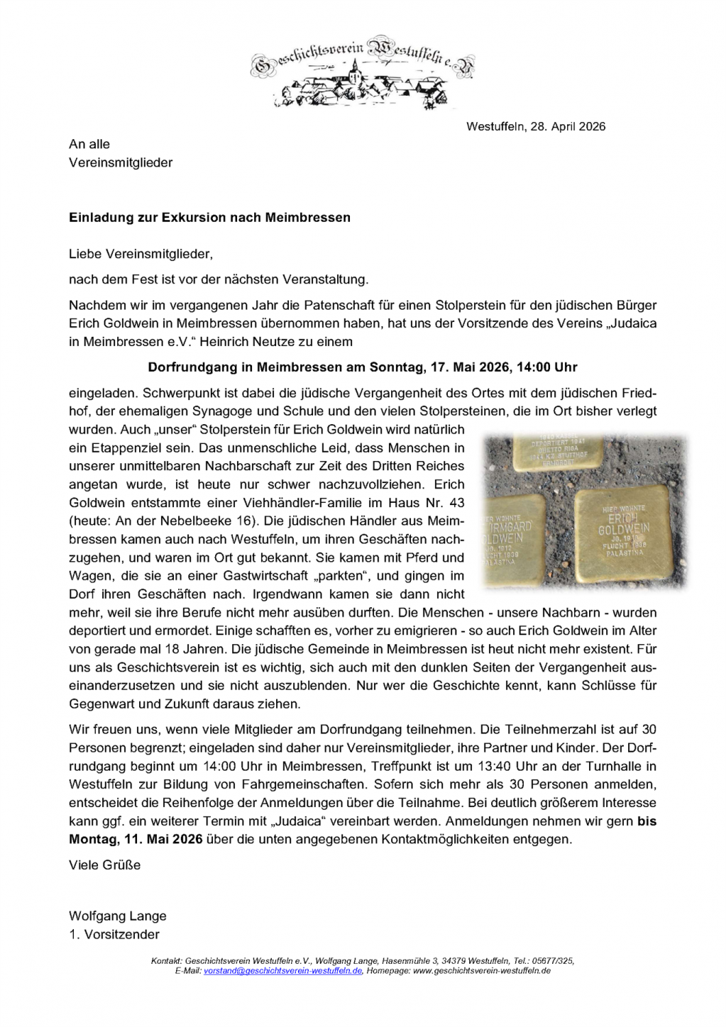 Unser Verein lebt jedoch nicht nur durch die Arbeit unserer Vereinsmitglieder und des Vorstands. Vielmehr freuen wir uns darüber, auch immer wieder viele andere Interessierte Dorfbewohner jeden Alters für eine Mitarbeit bei Projekten und Veranstaltungen zu gewinnen. So hoffen wir auch zukünftig "unsere Geschichte und Geschichten" für die nachfolgenden Generationen festhalten und weitergeben zu können.
